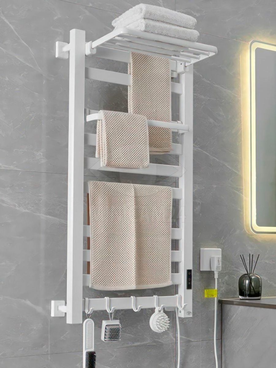 Полотенцесушитель электрический Loder 49*96 см с вешалкой (правое подключение) белый